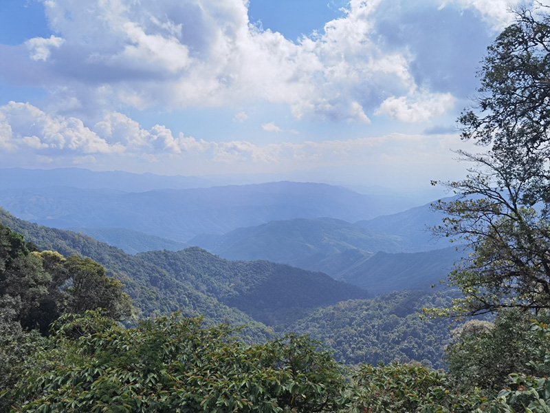 Phu Wae View 커피숍에서 멀지 않은 곳에 있습니다. Ban Piang So의 가장 아름다운 전망대로 간주됩니다. 전경에서 벼의 모습을 볼 수 있습니다. 산속에 숨겨진 고산족 마을 그리고 아름다운 계단식 높이에 늘어선 산들의 풍경