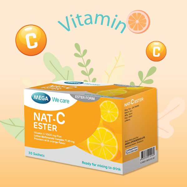 어린이나 알약을 잘 삼키지 못하는 분들은 비타민C 용액 "Nat C Ester" 를 사용해보세요. MEGA 위케어 브랜드의 또 다른 제품은 간편하게 섭취할 수 있는 제품입니다. 1포에 물에 녹이면 칼슘아스코르베이트가 함유되어 있습니다. 비타민 C를 더 잘 흡수하는 데 도움이 되는 71.45mg의 농축 바이오플라보노이드가 함유되어 있습니다. 따라서 신체의 면역력을 강화하는 데 도움이 됩니다. 코비드 감염의 심각성을 예방하세요 재감염 방지에 도움이 됩니다 더 빨리 회복하게 해줍니다. 향후 코로나19 상황을 예방하는 데에도 도움이 됩니다.