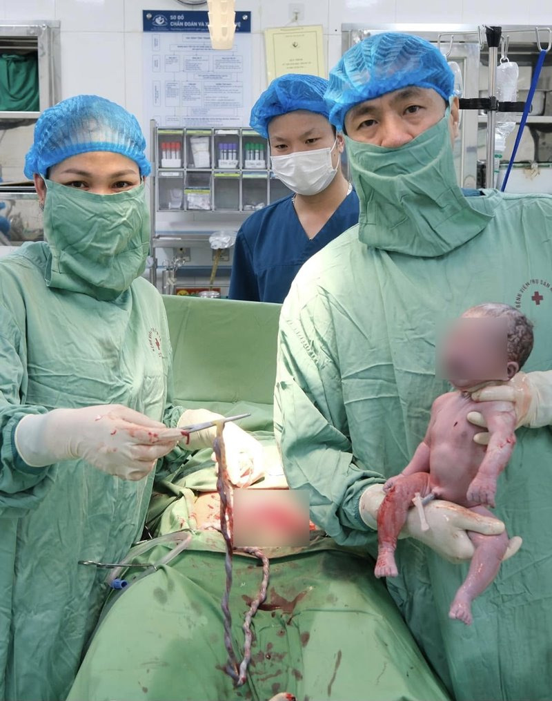 보고서에 따르면 DTML로 약칭되는 29세 임산부가 제왕절개 중 임신 37주차에 병원에 입원한 것으로 나타났다. 응우옌 쑤언 하이(Nguyen Xuan Hai) 박사가 이끄는 의료진은 태아의 탯줄이 목에 9번이나 단단히 감겨 있어 매우 위험한 상황을 초래했다는 사실을 알고 충격을 받았습니다. 따라서 아기를 구하기 위해서는 탯줄을 빨리 제거해야 했다.