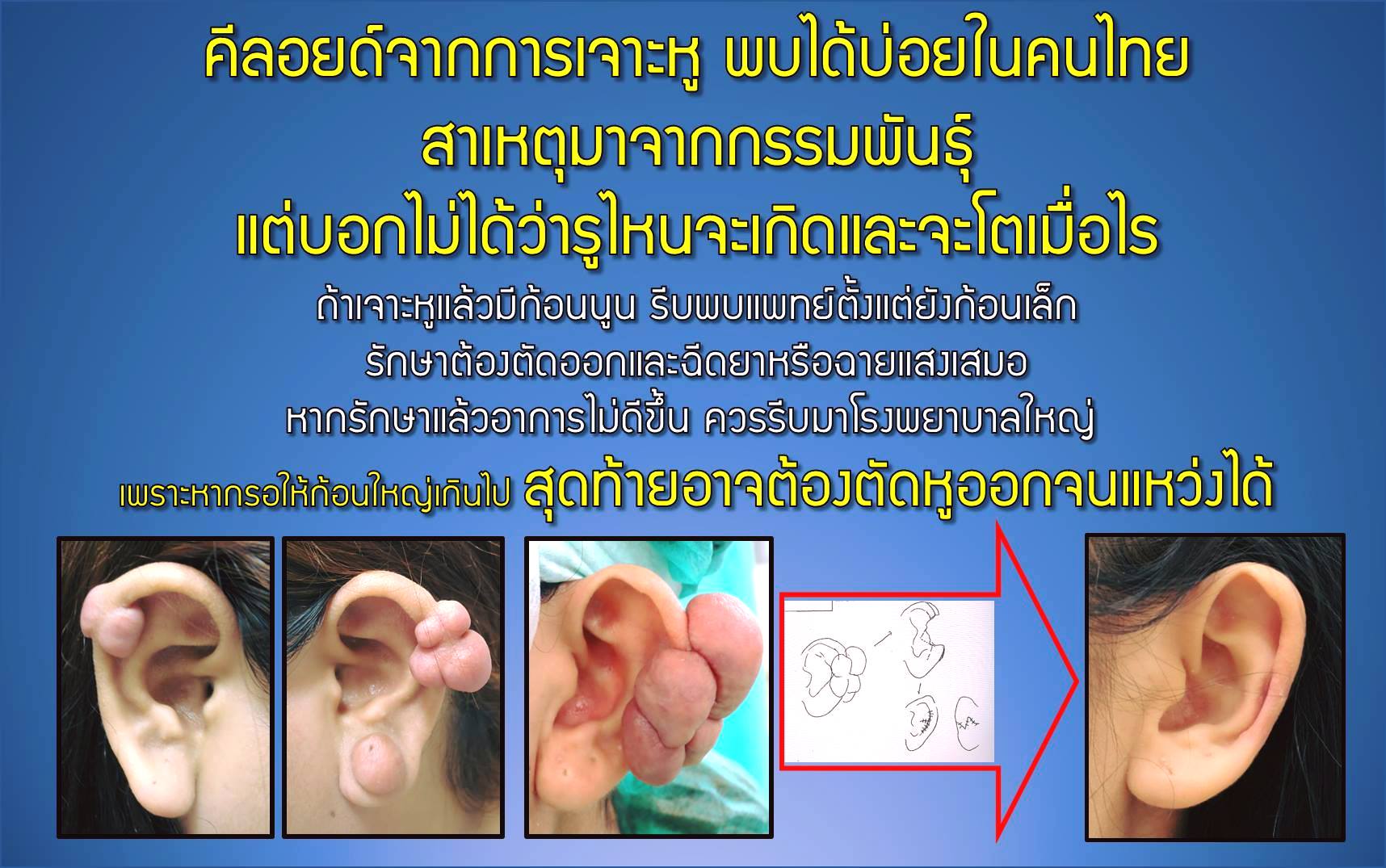 "귀가 뚫리고 켈로이드가 생겼어요. 귀를 뚫은 구멍에 커다란 덩어리가 생긴 것처럼 보이는 현상은 태국인들에게 매우 흔합니다. 인종과 유전적 요인 때문에