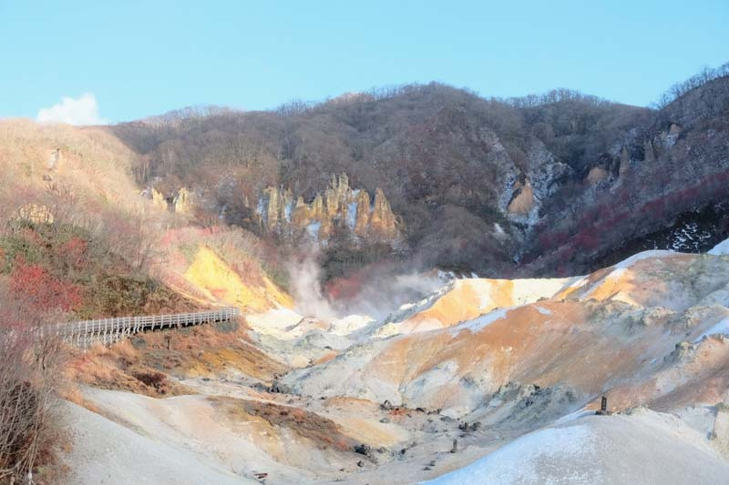 홋카이도 노보리베츠에 있는 지옥계곡 또는 "지고쿠다니"는 특이한 풍경이 특징인 독특한 자연 명소입니다. 이 지역은 땅에서 솟아오르는 증기와 유황 가스로 가득 차 있습니다.