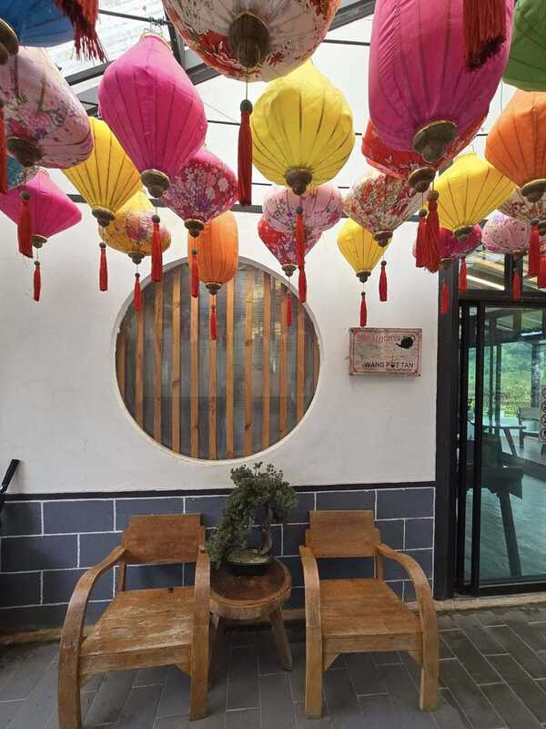 이곳은 치앙라이 주 도이 매 살롱의 왕풋탄 차 농장 입니다. 도착하자마자 우리는 원형의 중국식 출입문을 보고 바로 놀랐습니다. 붉은 등불로 장식 테이블과 좌석을 포함해 중국 서예 마치 중국에 다녀온 듯한 느낌을 줍니다.