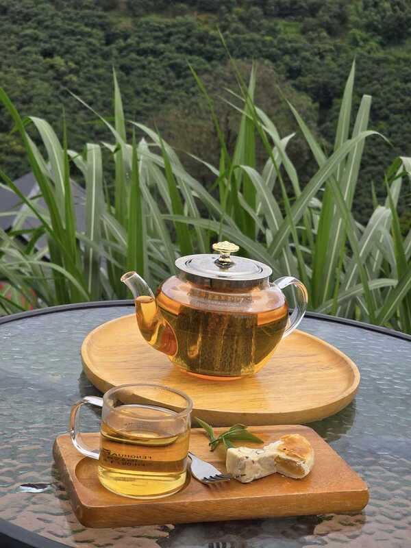 레스토랑, 카페, 숙박시설도 있습니다. 대규모 차 농장에 위치하고 있습니다. 산허리를 따라 아름다운 계단에 차 농장이 펼쳐져 있습니다. 농장의 분위기는 무성한 녹색 산으로 둘러싸여 있습니다. 가게 장식은 중국풍으로 꾸몄습니다. 앉아서 차를 마시며 경치를 감상하기에 적합한 아름다운 사진 코너가 많이 있습니다.