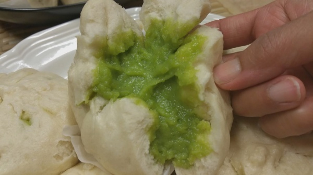 살짝 달콤한 판단 커스터드 쿤 판다찬의 레시피 판단 잎을 데친 후 코코넛 밀크와 설탕을 넣고 걸쭉해질 때까지 섞습니다.