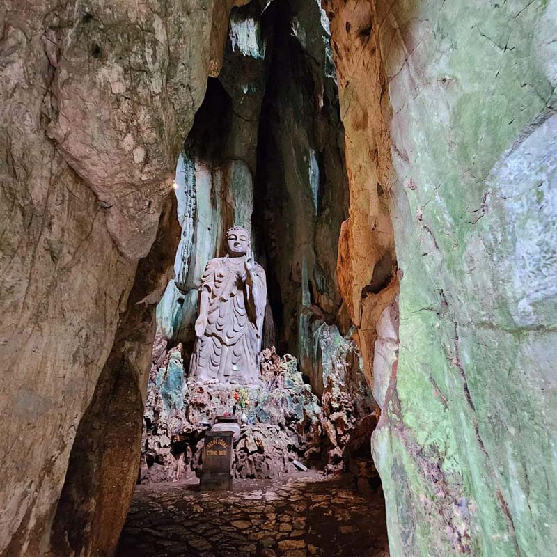 가장 유명한 대리석 산은 Thuy Son(물의 요소)입니다. 내부에는 미국과의 전쟁 중 베트콩의 피난처였던 Huyen Khong 동굴이 있습니다. 낮에는 동굴 벽을 통해 햇빛이 비치는 모습이 매우 아름답습니다. 내부에는 4개의 제단이 있는데, 사람들은 건강, 사랑, 재정, 자녀에 대한 축복을 구하러 오는 것으로 믿어집니다.