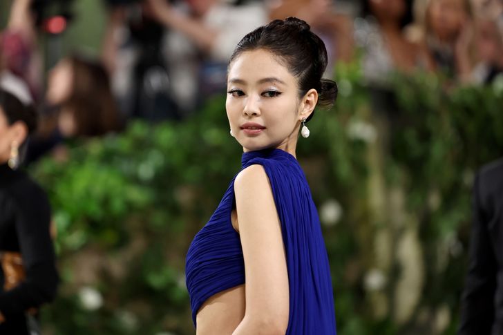 블랙핑크 제니가 2024 메트 갈라 레드카펫에서 샤넬이 아닌 타 브랜드의 짧은 미니 드레스를 입고 등장해 화제를 모았다 .