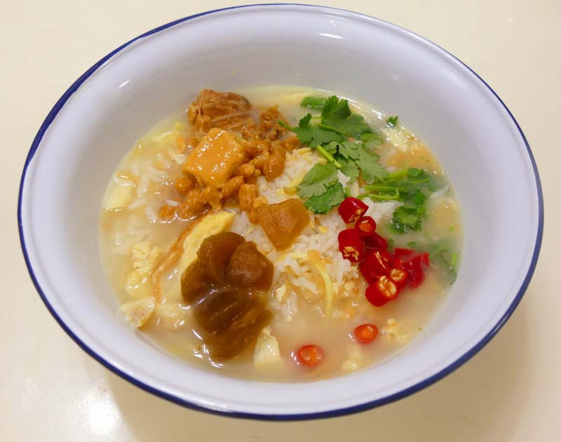 채식 죽 고기 없는 아침 식사 허브 향이 나고 맵고 기름지지 않습니다
