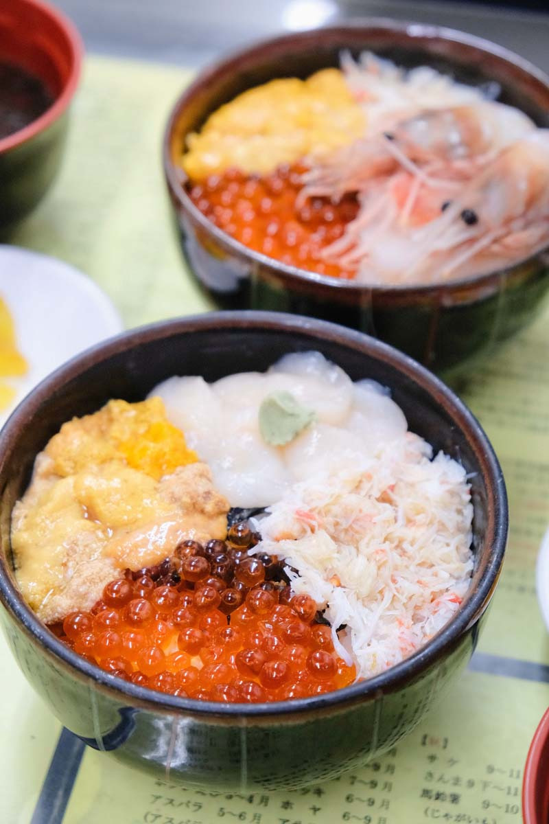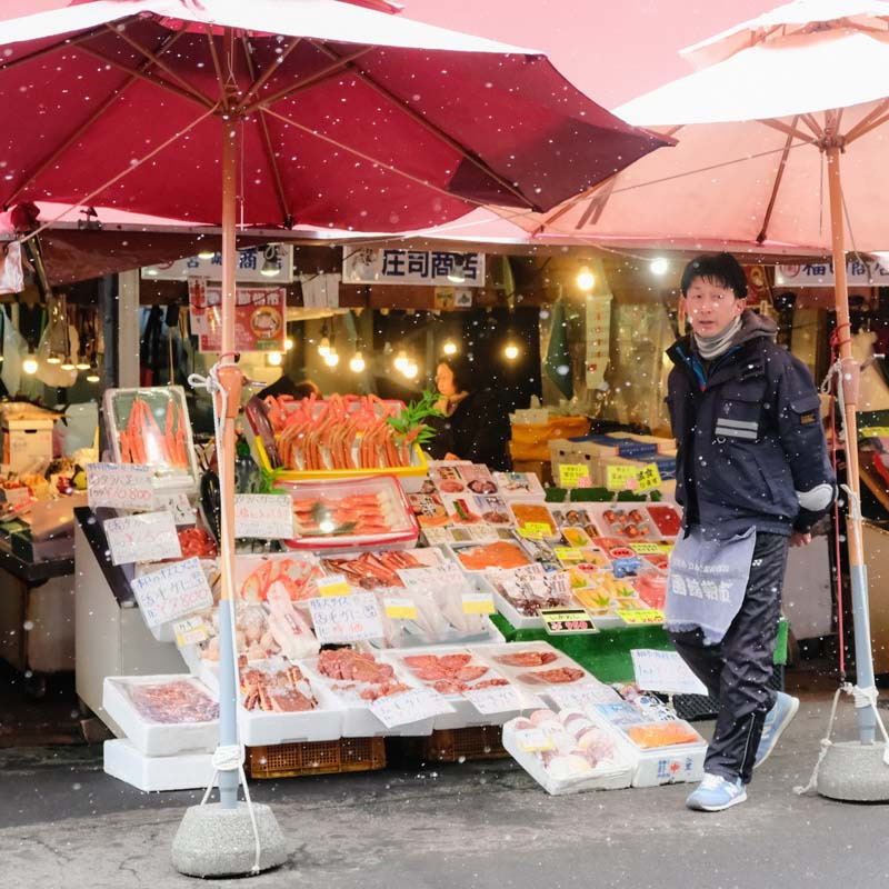 대게, 가리비, 오징어, 성게 등 신선한 해산물을 판매하는 250개가 넘는 노점상이 이른 아침부터 북적입니다. 우리는 통로 전체에서 우리에게 팔기를 기다리고 있는 상인들로부터 신선한 재료를 구입하는 것을 즐길 수 있습니다. 또는 갓 조리된 해산물을 맛보세요 시장 내 레스토랑에서도 구할 수 있습니다.