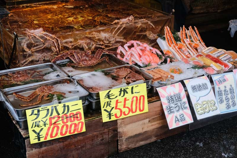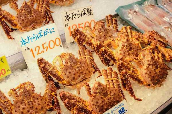 대게, 가리비, 오징어, 성게 등 신선한 해산물을 판매하는 250개가 넘는 노점상이 이른 아침부터 북적입니다. 우리는 통로 전체에서 우리에게 팔기를 기다리고 있는 상인들로부터 신선한 재료를 구입하는 것을 즐길 수 있습니다. 또는 갓 조리된 해산물을 맛보세요 시장 내 레스토랑에서도 구할 수 있습니다.