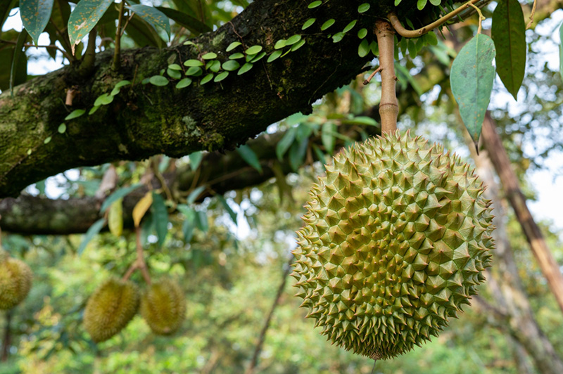 찬타부리 숙소 두리안 과수원 한가운데 관광객 수용을 위해 정원을 개방하다 다양한 두리안 품종의 시식 서비스를 제공합니다. 그리고 두리안, 망고스틴, 람부탄, 롱콩, 롱안 등 찬타부리 지방의 다양한 과일을 즐겨보세요. 리조트에 숙박하지 않더라도 리조트 내에서 과일을 따서 기념사진도 찍을 수 있습니다. 특히 하이라이트는 두리안 과수원과 유기농 채소밭을 가까이에서 감상할 수 있는 스카이워크입니다.