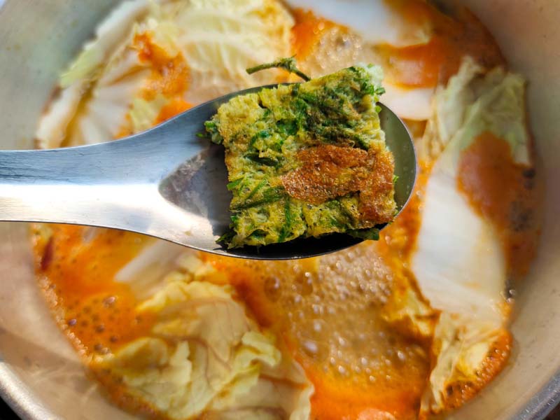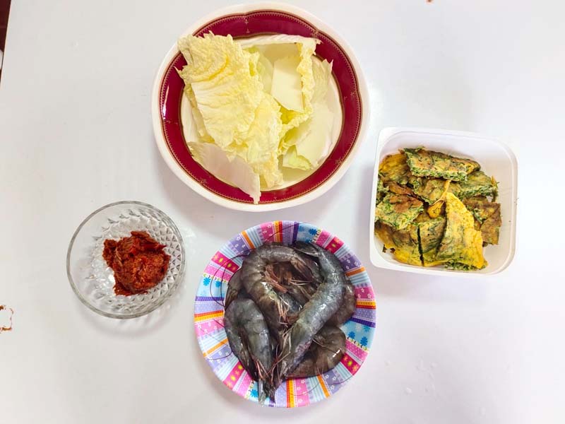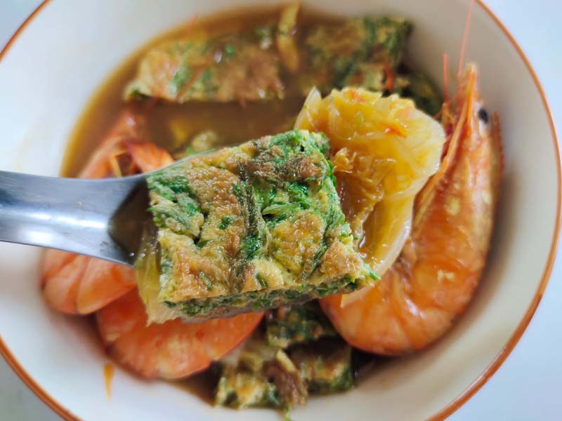 Tip: 새우를 넣고 젓지 마세요. 왜냐하면 그것은 당신을 비린내로 만들 것이기 때문입니다.