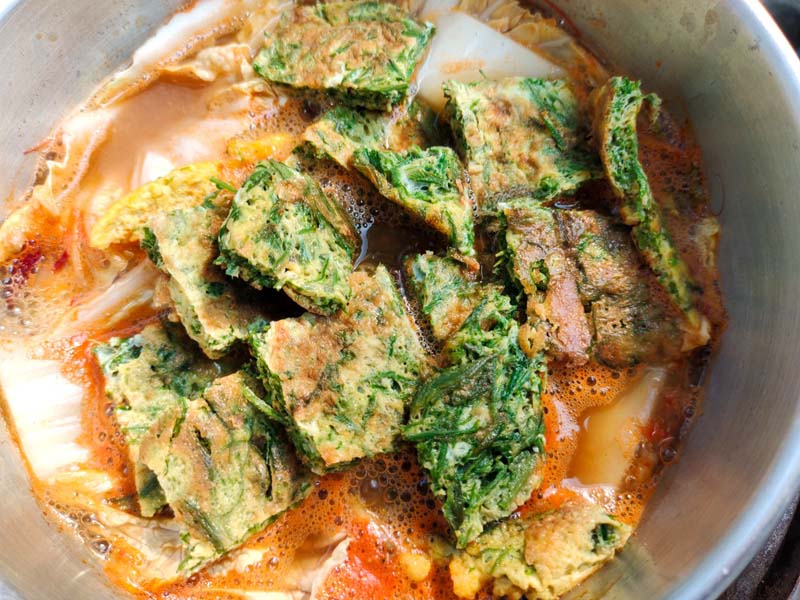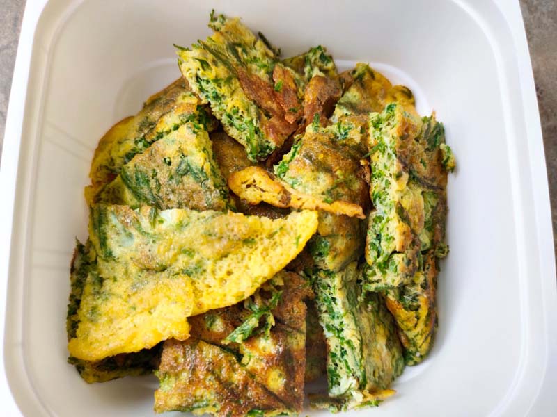 5. 준비한 잘게 썬 아카시아 달걀후라이를 넣어주세요.